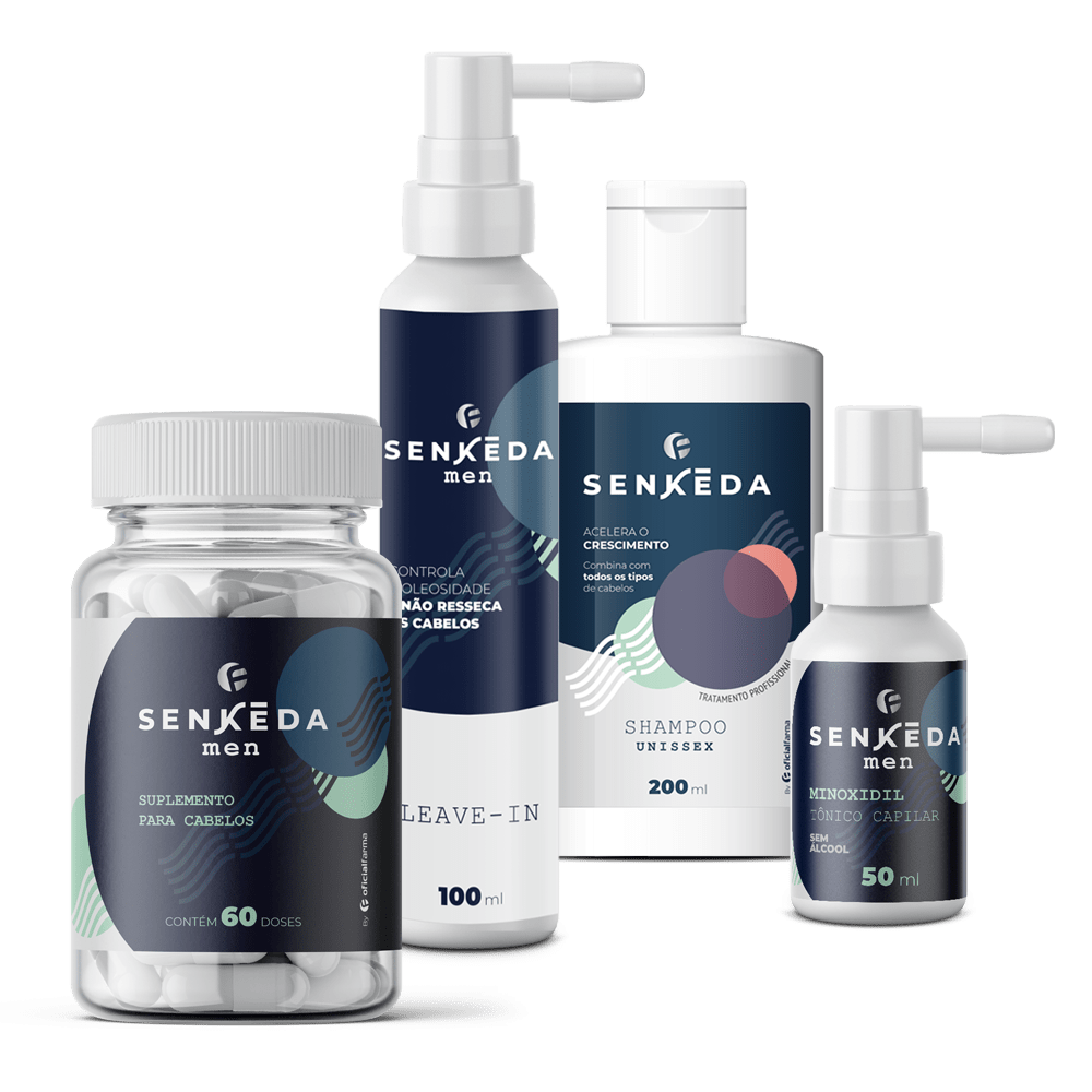 O super kit senkeda men é o tratamento completo com o melhor custo beneficio contra calvicie e queda capilar masculina, por possuir produtos de uso tópico e oral